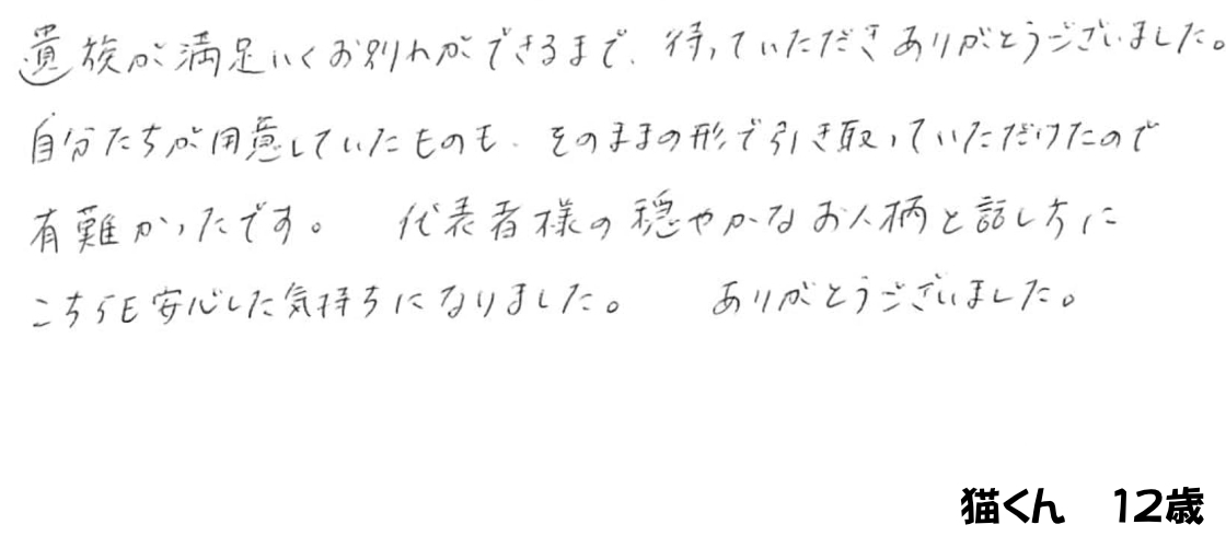 心に寄り添うサポートで、ご家族が笑顔で「ありがとう」と送り出せるよう支えます。
