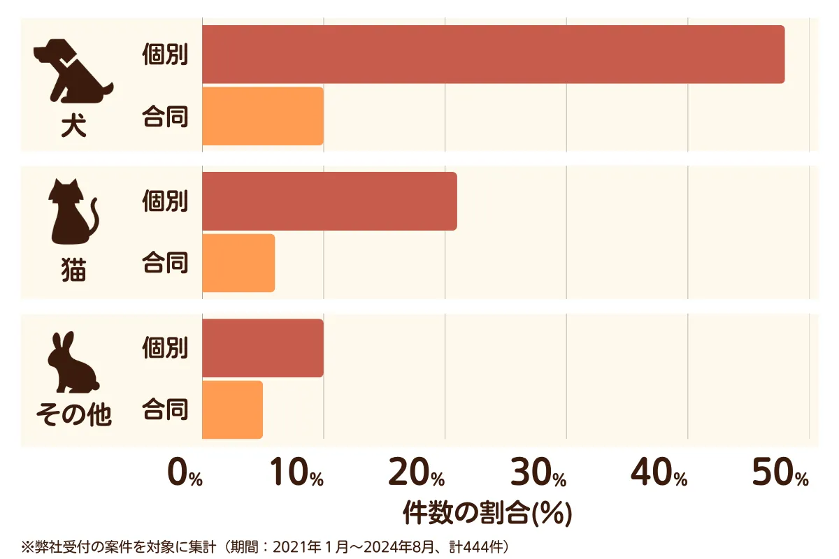 「遺骨を残したい」「お供え物と一緒に火葬してほしい」という方には、民営のペット葬儀・ペット火葬業者がおすすめです。