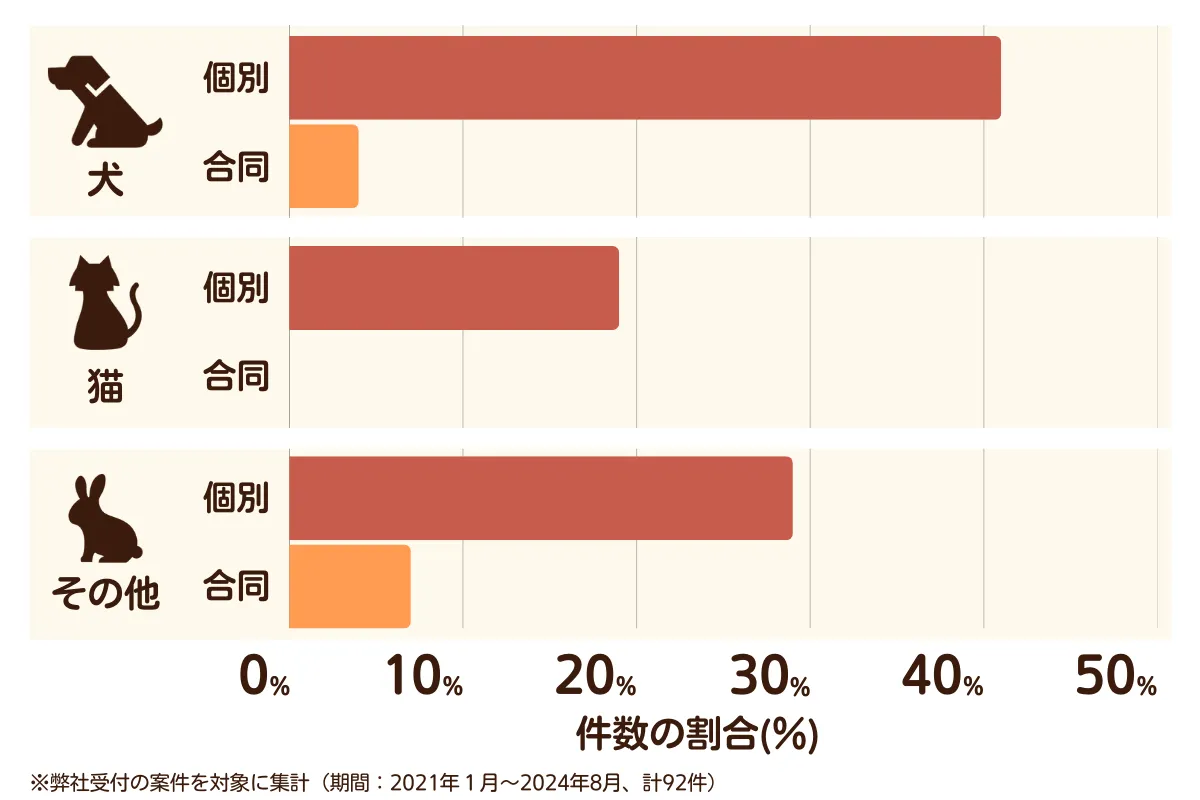 ペット火葬会社では、犬や猫はもちろん、ハムスターなど小さな動物の火葬に対応しているところもあります。